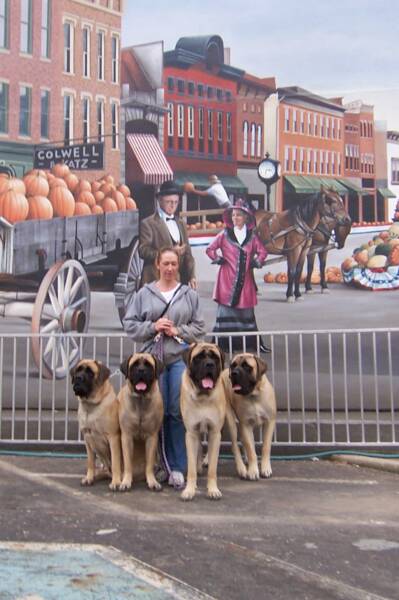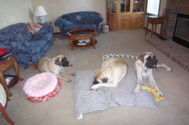 Finally in 2005, we moved into the country and have 33 great acres for our pets to play. Prior to moving we had 3 dogs, a Chihuahua, Pug, and Boxer. Since moving onto the farm we have added 9 beautiful Mastiffs! This brings our dog total to 12. In addition we have a Cockatoo, a Quaker Parrot and 2 cats!